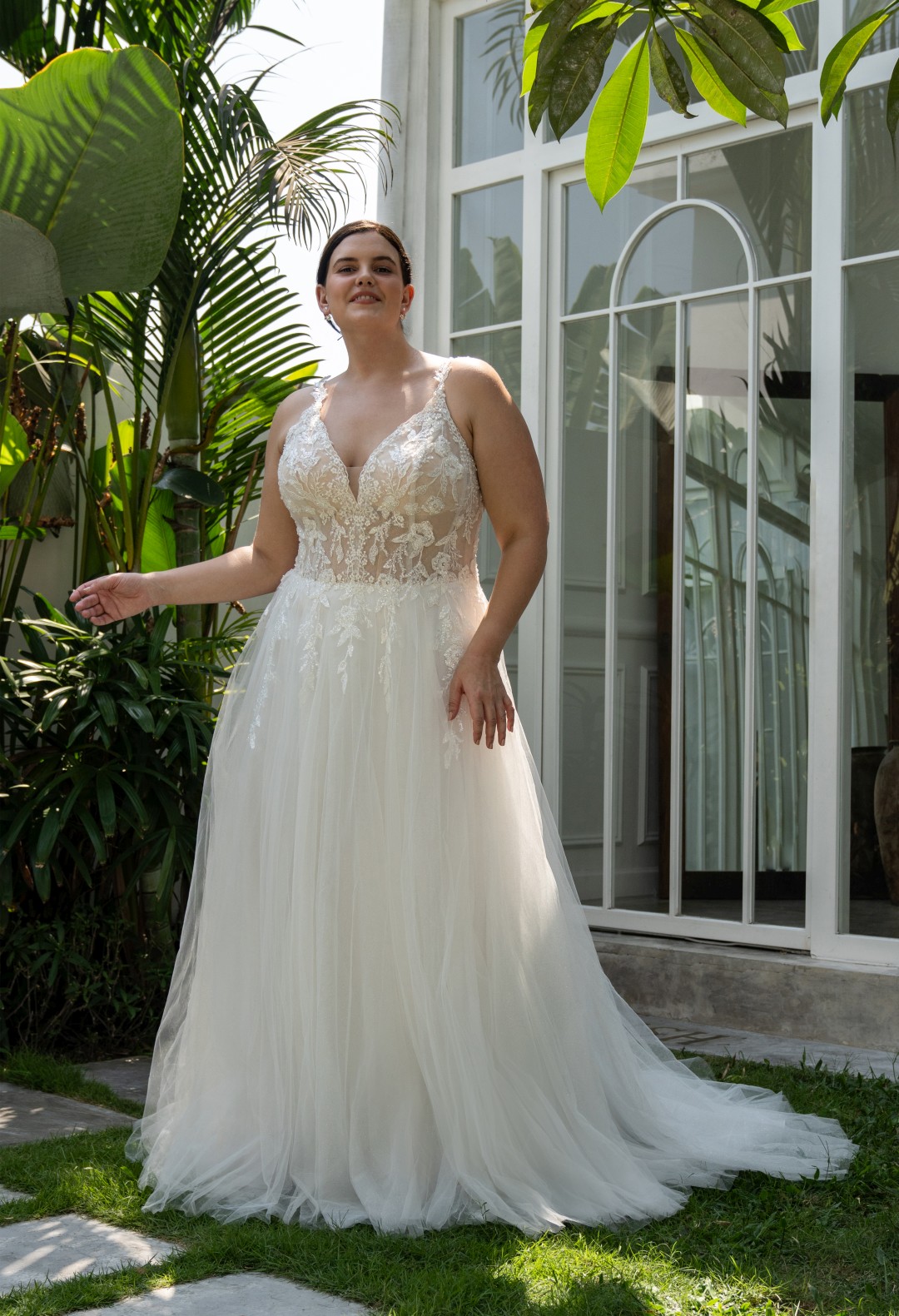 Unser Geschäft bietet eine große Auswahl an Brautkleidern in verschiedenen Größen und Stilen, insbesondere für kurvige Bräute.
